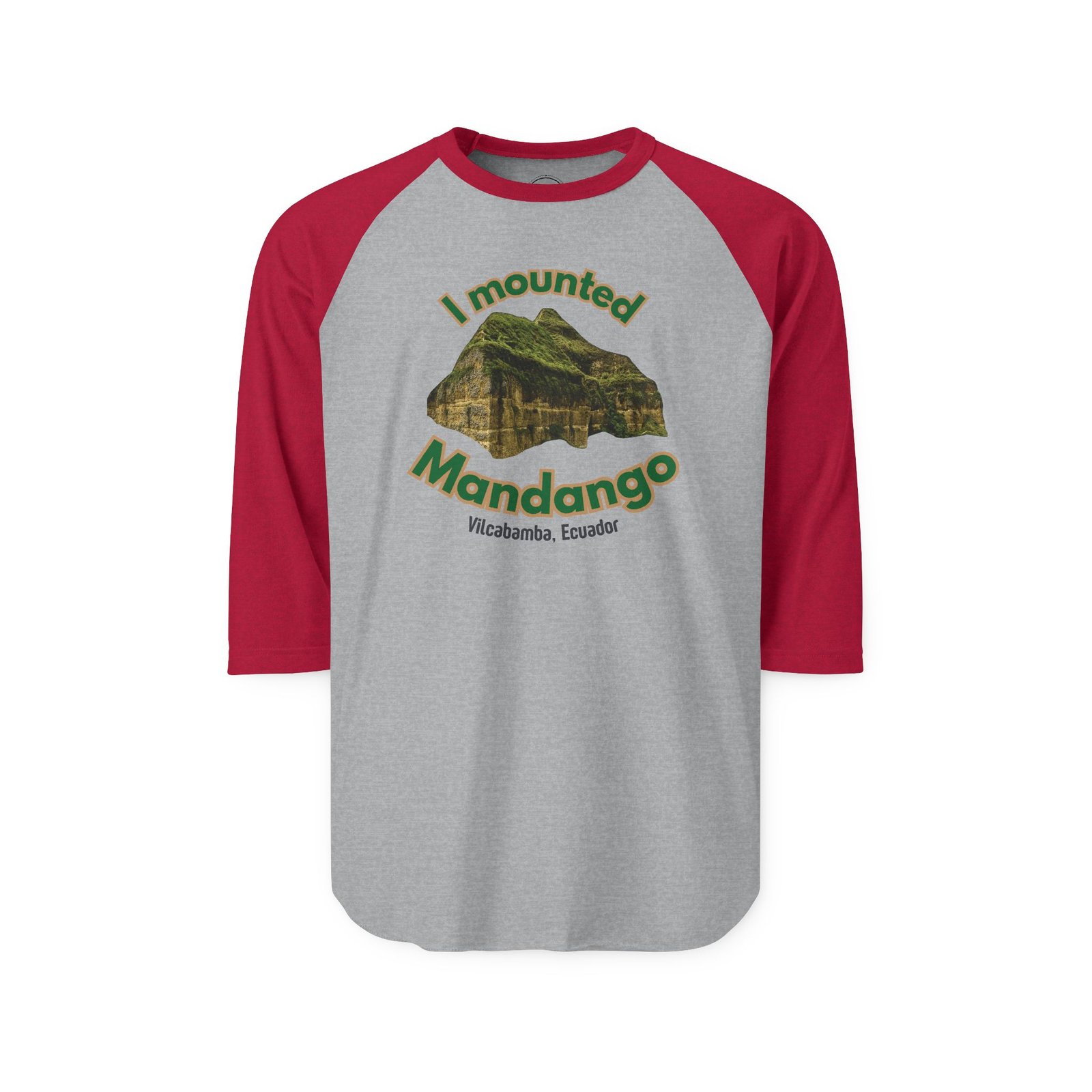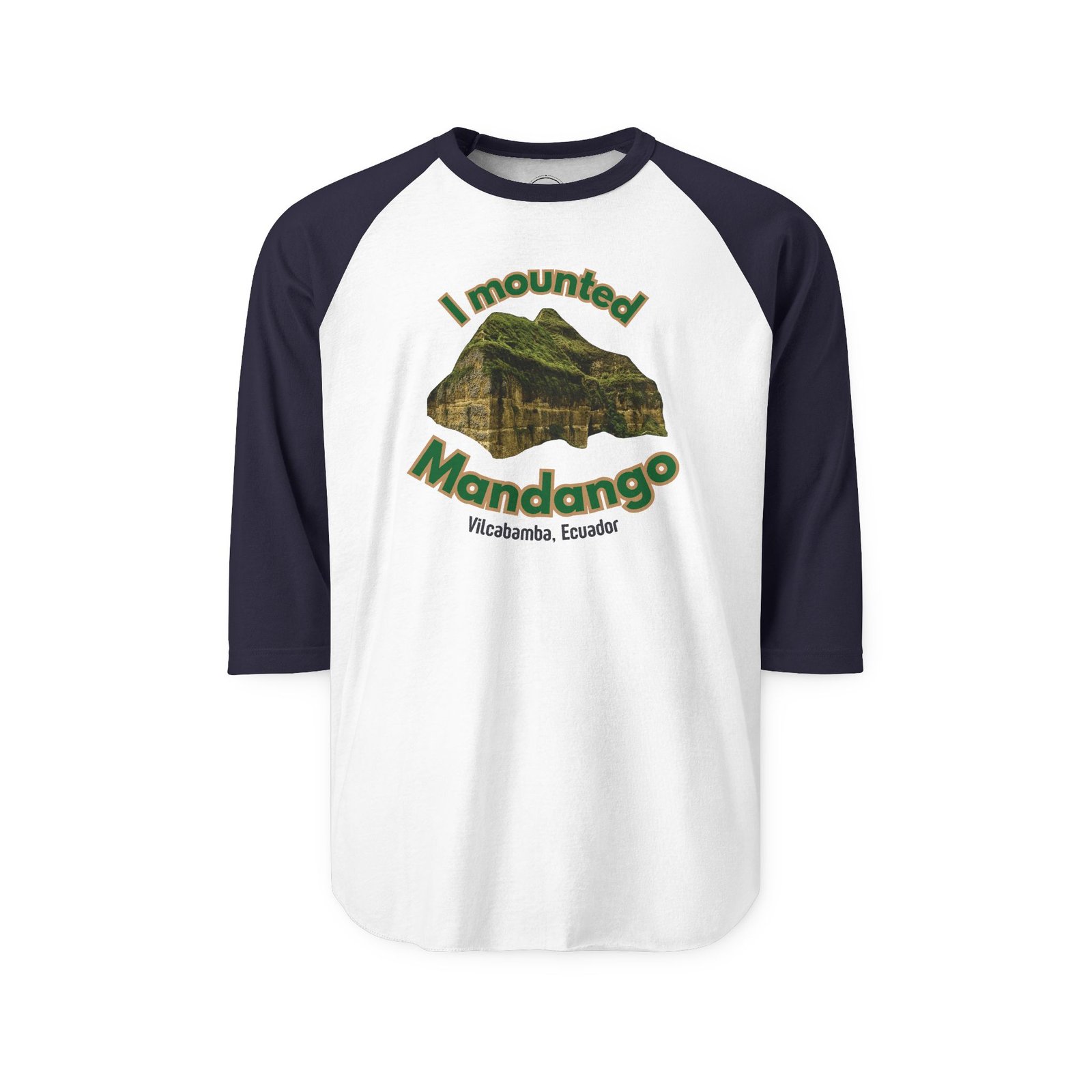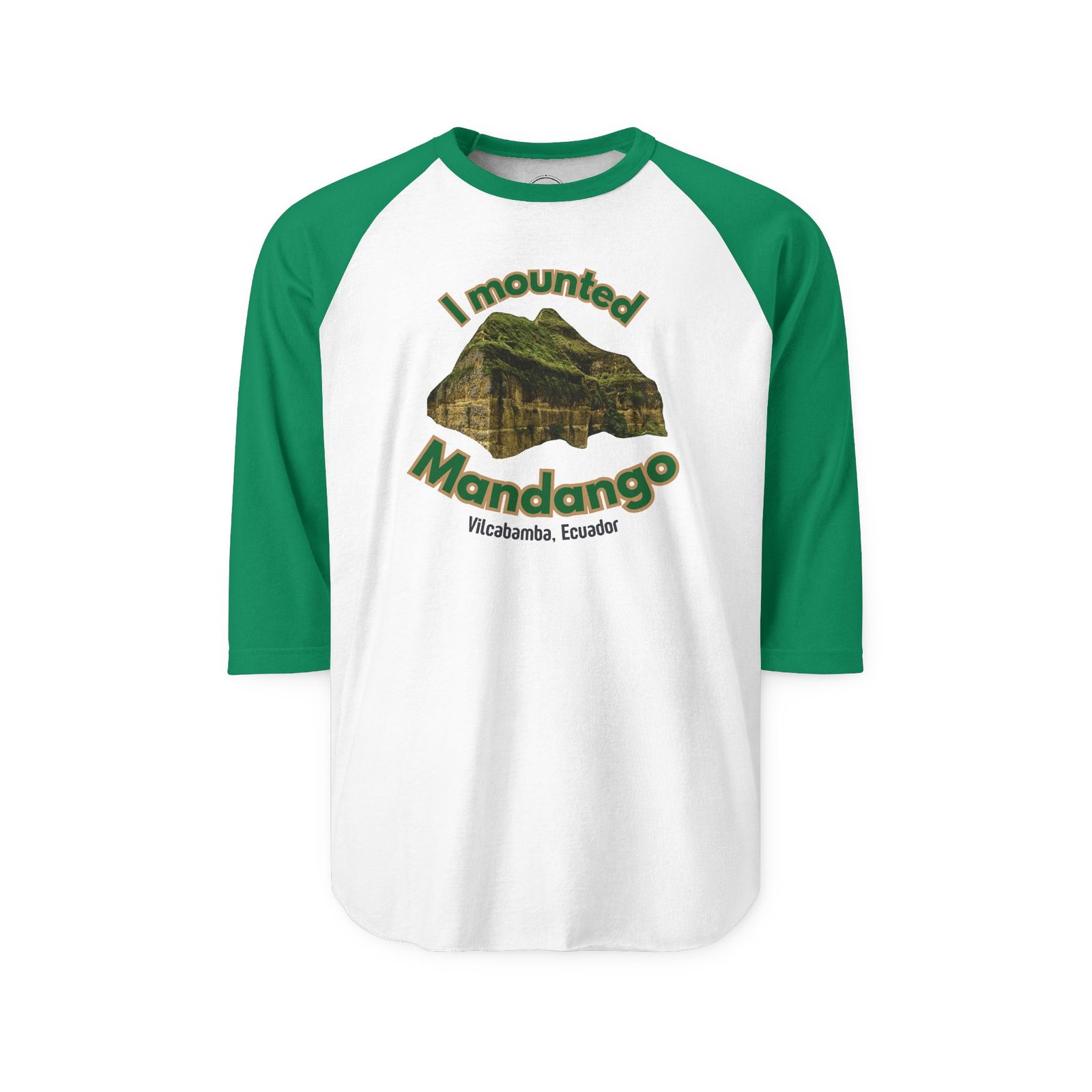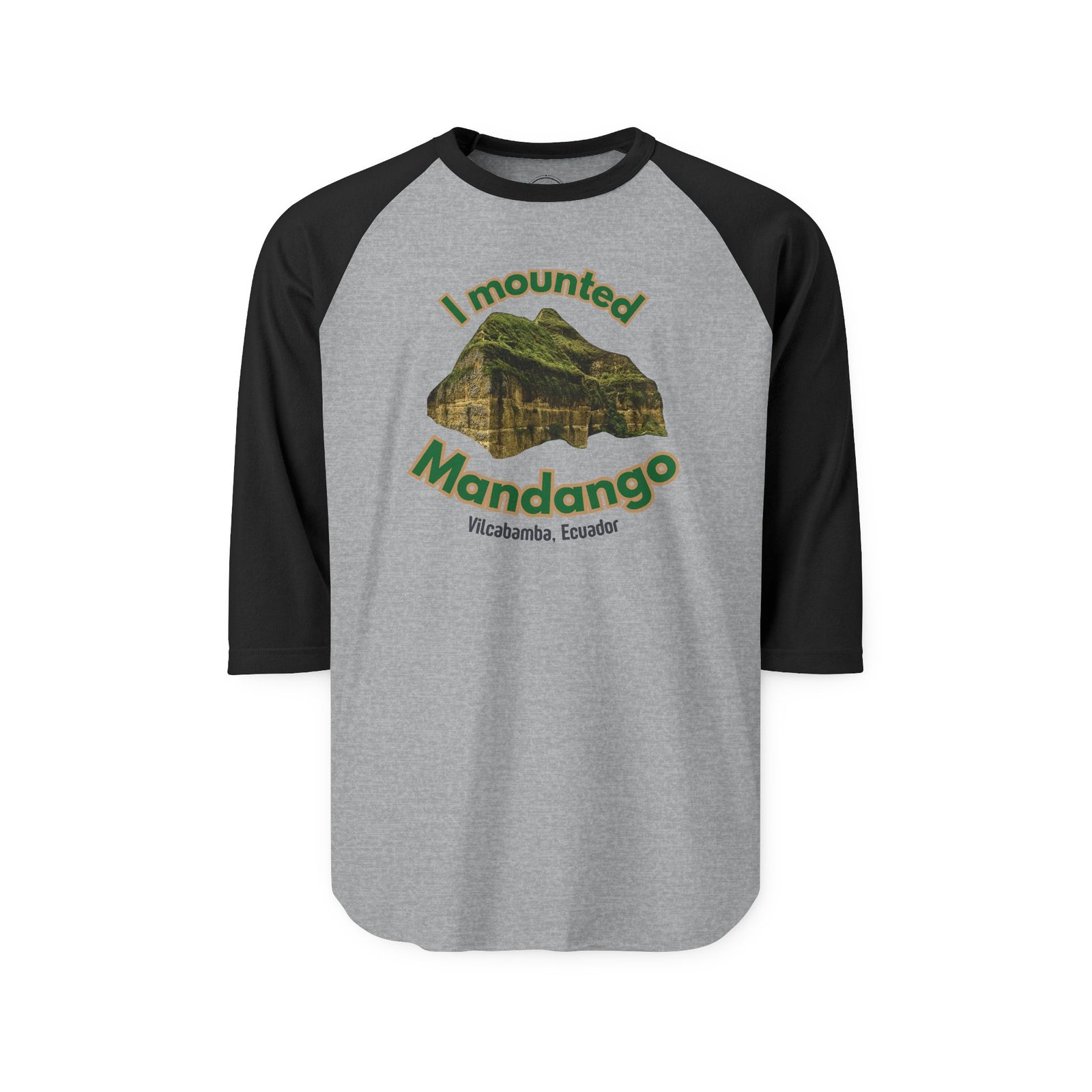 Introducing the Mounted Mandango three quarter sleeve raglan t-shirt, a playful tribute to the intrepid adventurers who’ve scaled Vilcabamba’s iconic Mount Mandango in Ecuador’s Andes Mountains. This vibrant print honors the Valley of Longevity’s adventurous spirit, sparking joy and triumph for explorers. It kindles souls with freedom, vitality, and hope. Wear it with pride, share the chuckle, and let the world know you’ve mounted Mandango.